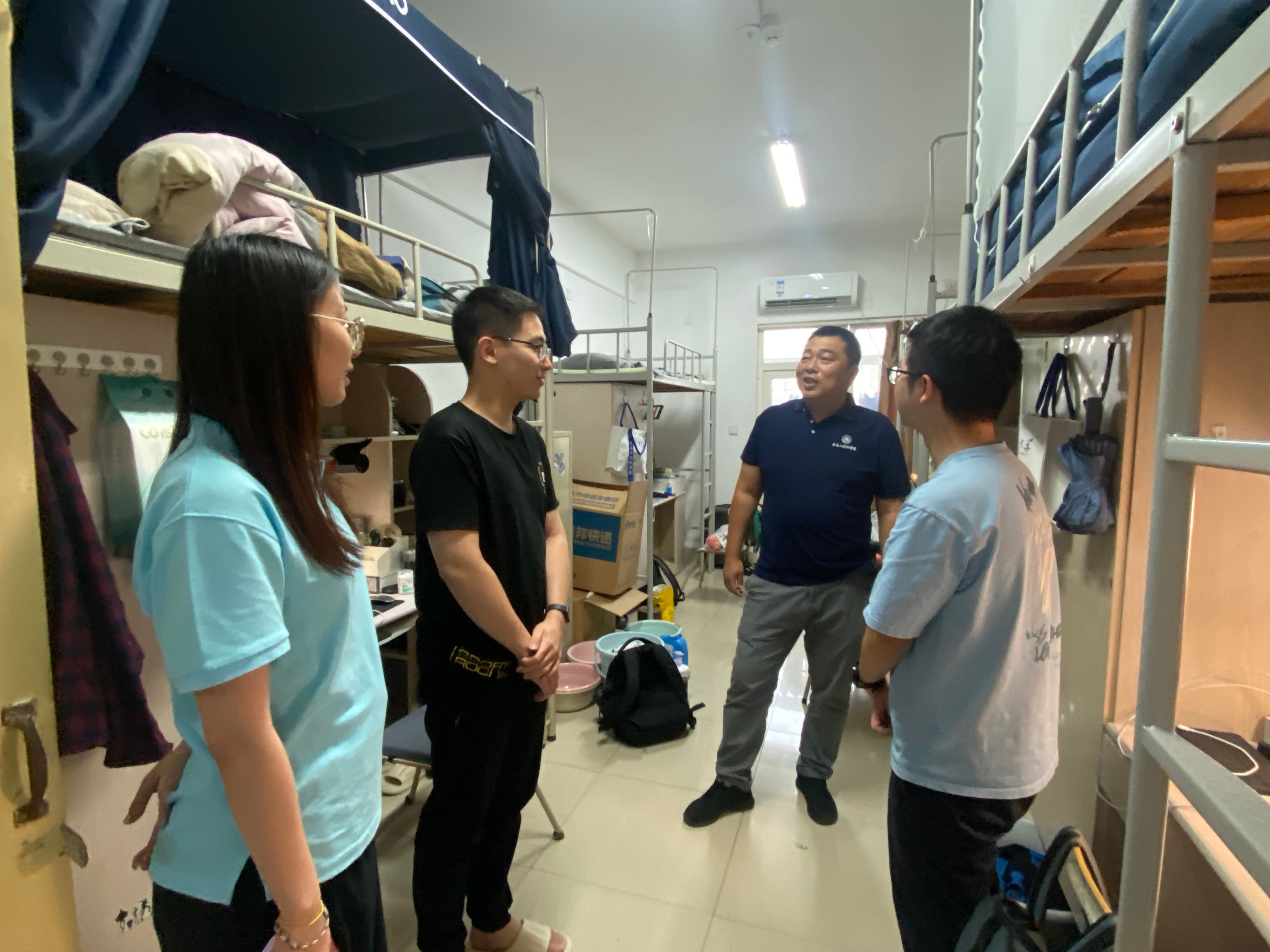 老师们来到学生宿舍,与留校学生亲切交谈,代表学院向大家致以节日的慰问,并为同学们送上了“爱心礼包”。在温馨热烈的氛围中,老师们详细询问了大家的学习生活状况和对未来科研的规划,耐心倾听同学们在新学期开学之初对学业、生活的种种困惑,并提供了针对性的建议与指导。交谈中,老师们教导同学们,要合理规划学习生活,认真学习专业知识,为将来入企实践打下坚实的基础。老师们鼓励同学们,要锚定真问题选择科研方向,致力于解决国家“卡脖子“难题,心怀“国之大者”,努力成为担当民族复兴大任的卓越工程师。老师们叮嘱同学们,中秋佳节是团圆的节日,要在学习科研之余给家人打个电话,平时也要与家人常联系。同学们对学院的关心慰问表示感谢,表示将合理规划自己的学习生活,以饱满的精神状态投入新的学习阶段,不辜负学院的期待。