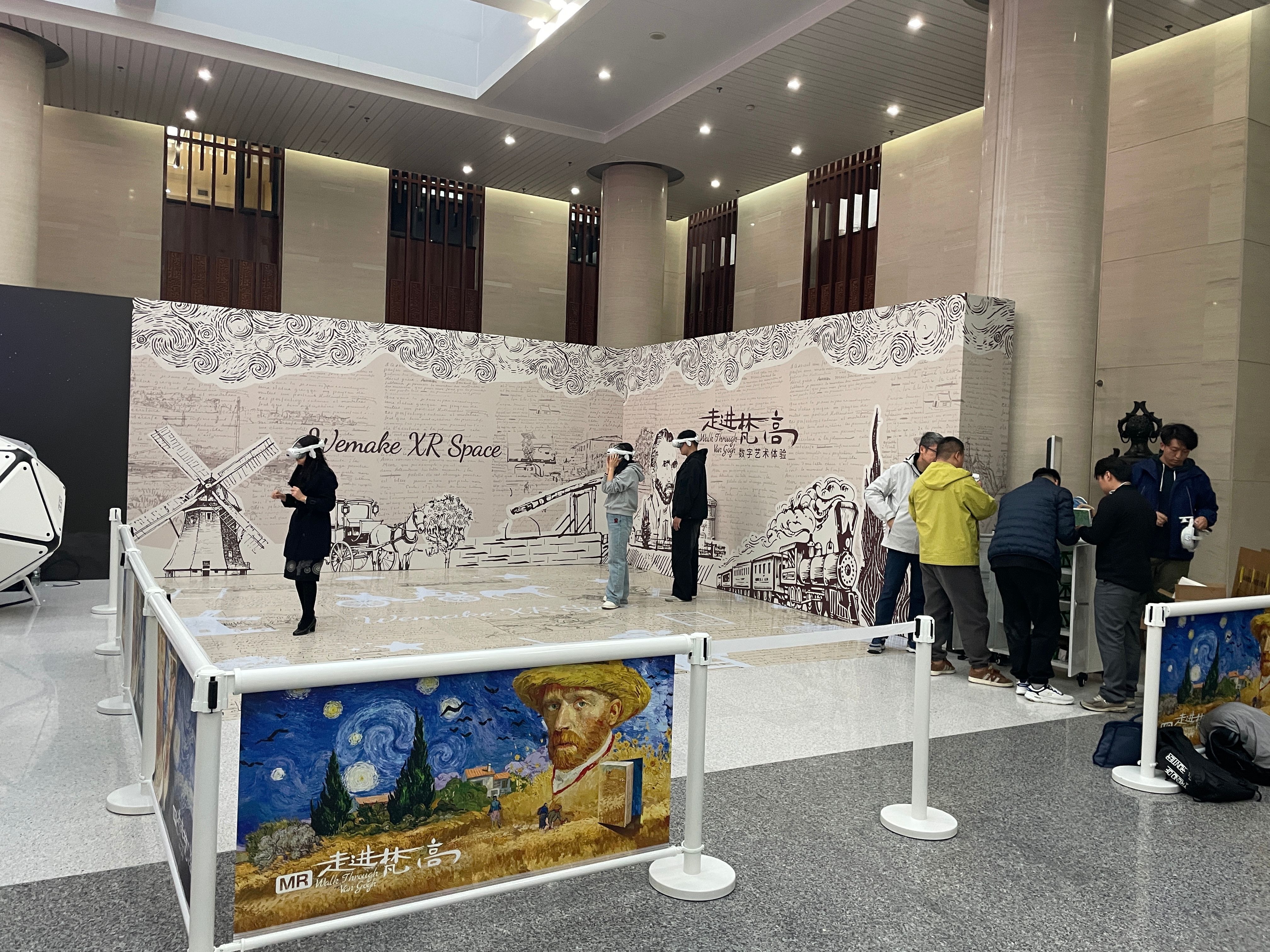在室内展区,八大主题展台全面展示了元宇宙领域的核心“硬核”科技,包括工业设计、智能制造、新材料、AI/算法/软件、Audio声学技术、半导体、微显示以及微纳光学等。通过这些科技产品的展示,参观者可以了解到前沿技术如何支撑起了“元宇宙”的宏大构想。更有趣的是,现场设置了多项沉浸式体验:XEO沉浸式娱乐座舱提供了未来感十足的娱乐互动;Wemake XR Space带来“走进梵高”的数字艺术体验,让经典油画艺术以全新的方式“活起来”。