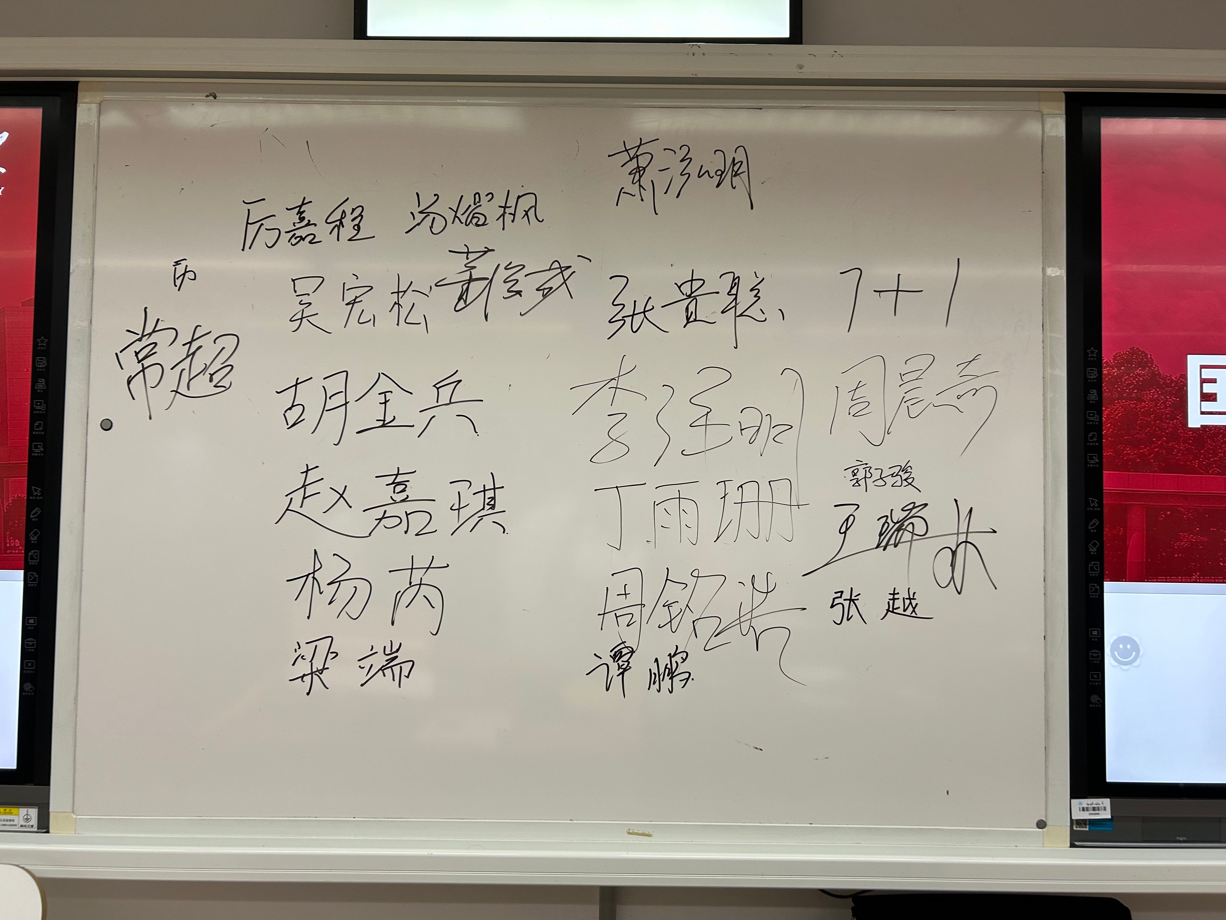 在自我介绍环节,每位同学逐一上台,自信大方地介绍自己的姓名、家乡和专业方向等,并在黑板上书写艺术签名,在大家心中留下了鲜明的第一印象。