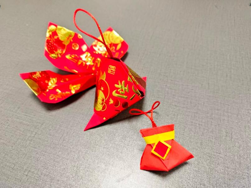 在纸艺制作体验环节,同学们暂时放下了手中的科研代码与实验数据,全神贯注地投入到锦鲤与福袋的制作中。折叠、翻转、拼接,一个个普普通通的红包、一张张平平无奇的彩纸在大家手中逐渐成型,化作寓意“年年有余”和“福气满满”的精致手作。