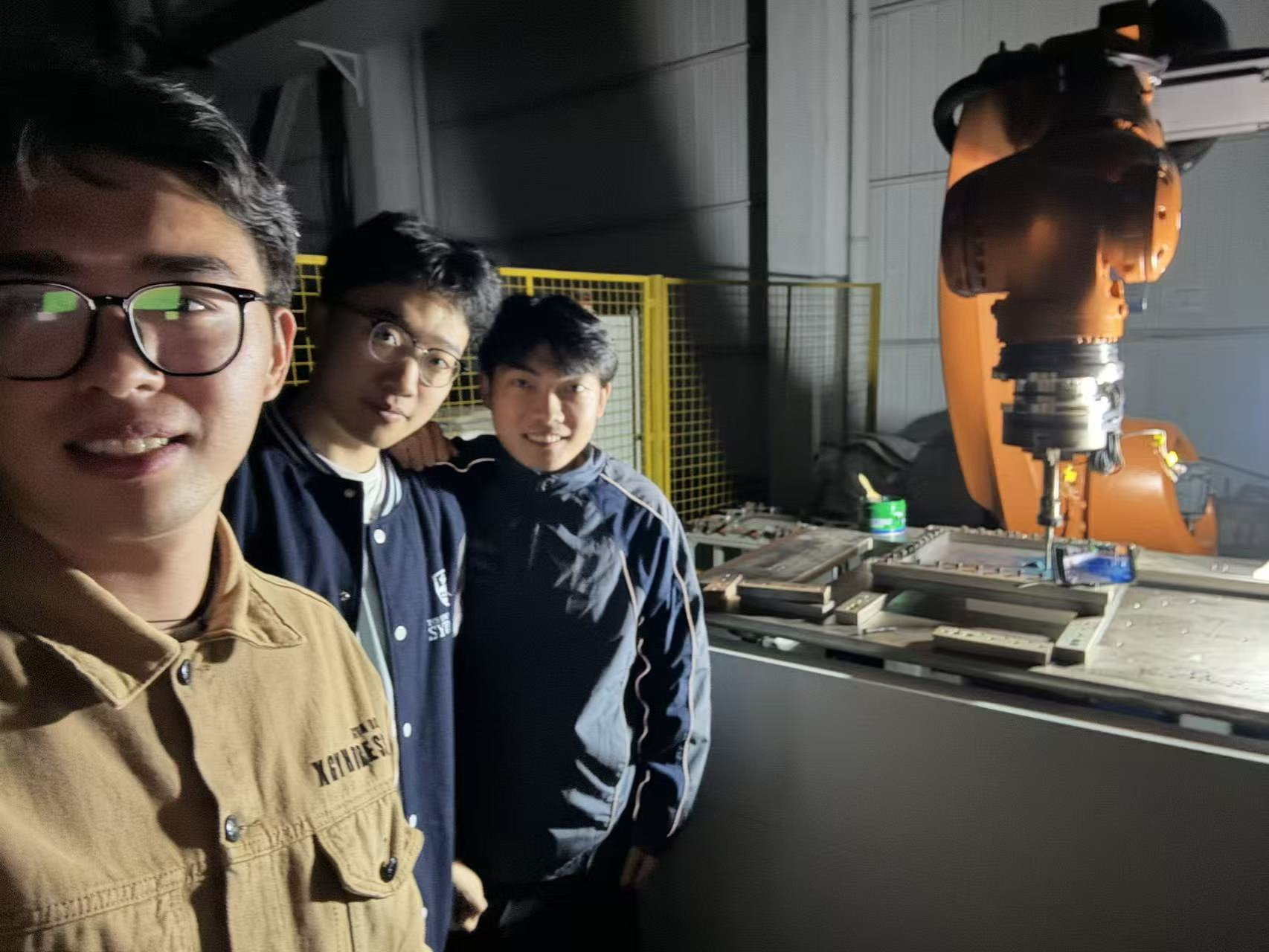 我在威海校区机器人渐进成形实验室,与团队成员共同开展金属板材柔性渐进成形技术的研究。该技术通过局部渐进塑性变形实现复杂曲面构件的高效成型,在轻量化部件、医疗器械个性化定制等领域具有应用价值。我在实验中负责轨迹规划与成形精度分析,在连续试错与优化中深入理解了板材变形机理与工艺调控规律,逐步掌握了机器人协同成形系统的集成与操控方法。